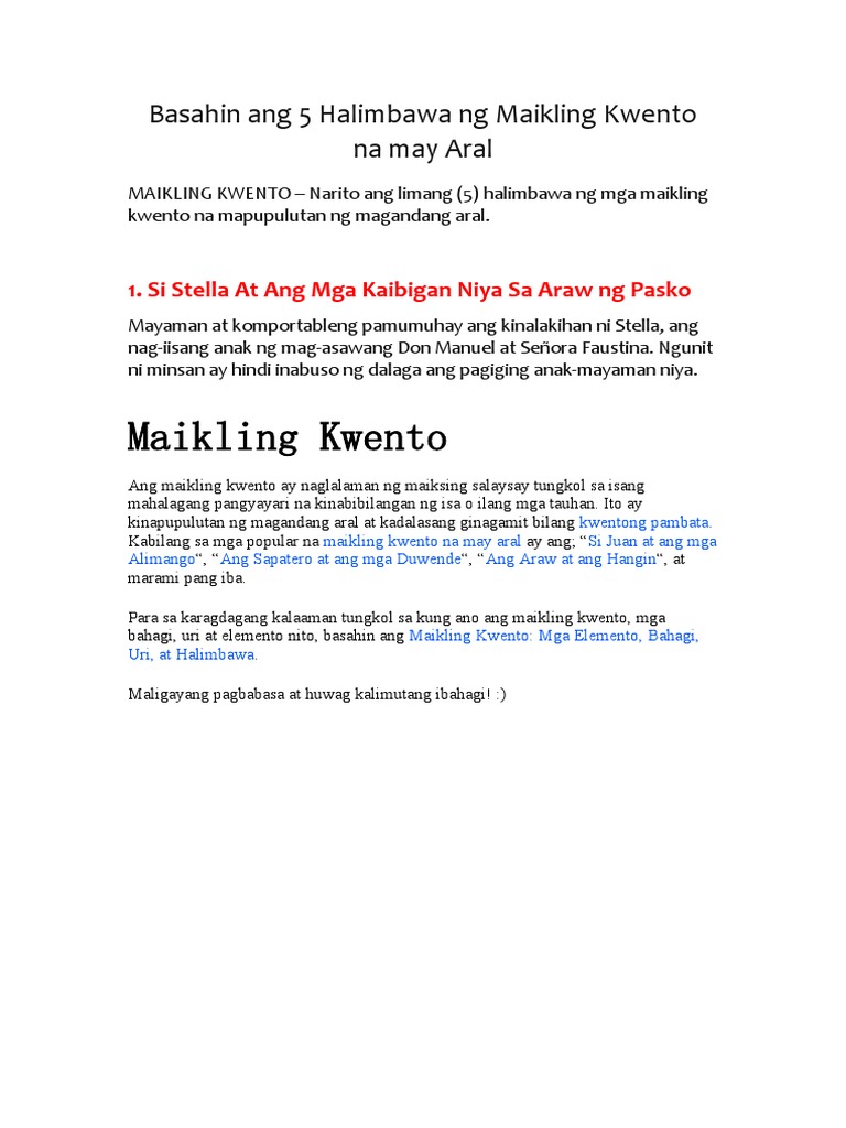 Tuwing Disyembre abala ang mga tao para sa mga regalo sa ibang tao. Download for FREE these sets of reading materials MAIKLING KWENTO available in 8 different sets which are suitable from Grade 1 to Grade 6 learners. Sa huli ang buong kuwento ng Pasko ay humantong sa huling tatlong araw ng buhay ng Tagapagligtas.