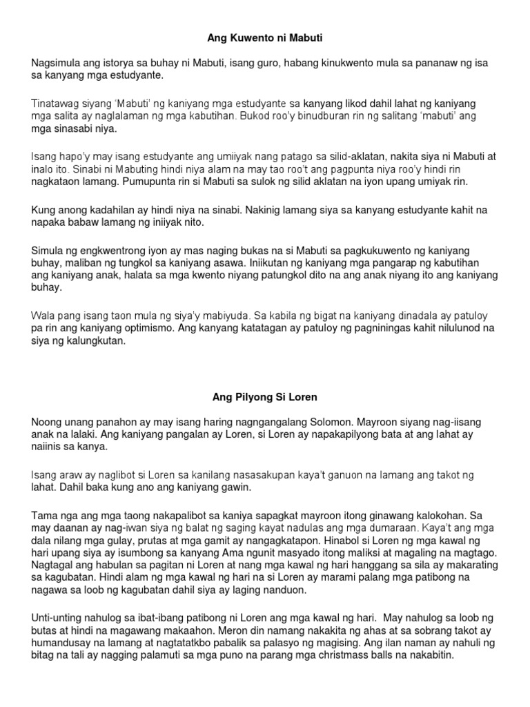 Hindi siya nakikinig sa ina niya at palagi siyang wala sa klase. Ito ang aking gulayan - Napakagandang pagmasdan Ang paligid ay luntian. MAIKLING KWENTO Narito ang limang 5 halimbawa ng mga maikling kwento na mapupulutan ng magandang aral.