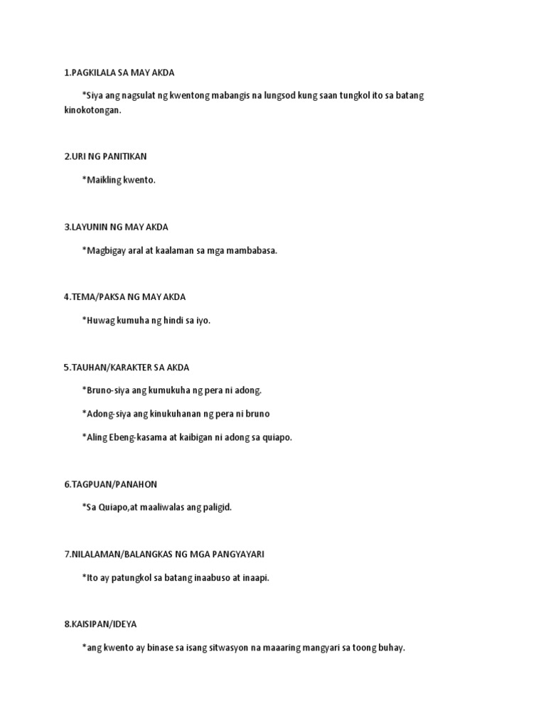 Ang diwa o mga paksa ng maikling kwento ay napapanahon sapagkat ito ay tumatalakay sa katotohanang nangyayari sa ating mundong ginagalawan. TTaauuhhaann DDiittoo ssaa bbaahhaaggiinngg iittoo iinniiiissaa-- iissaa aanngg mmggaa nnaaggssiiggaannaapp ssaa kkwweennttoo 2. Arjona Mark Lawrence Petsa.